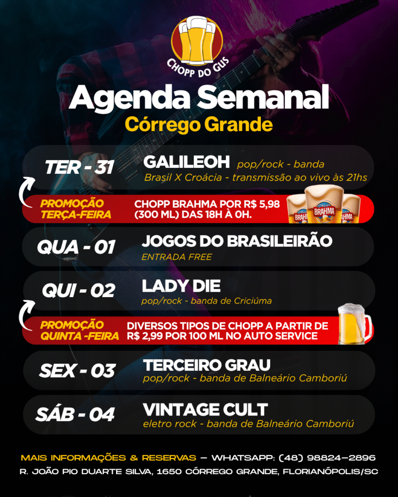 No Chopp do Gus, além de você pode reservar a sua mesa para curtir a programação regular da casa, você pode também fazer reservas especiais para a realização de happy hours, comemoração de aniversários e eventos fechados. Disponibilizamos uma estrutura física e operacional completa para você se divertir com as pessoas que você mais gosta.