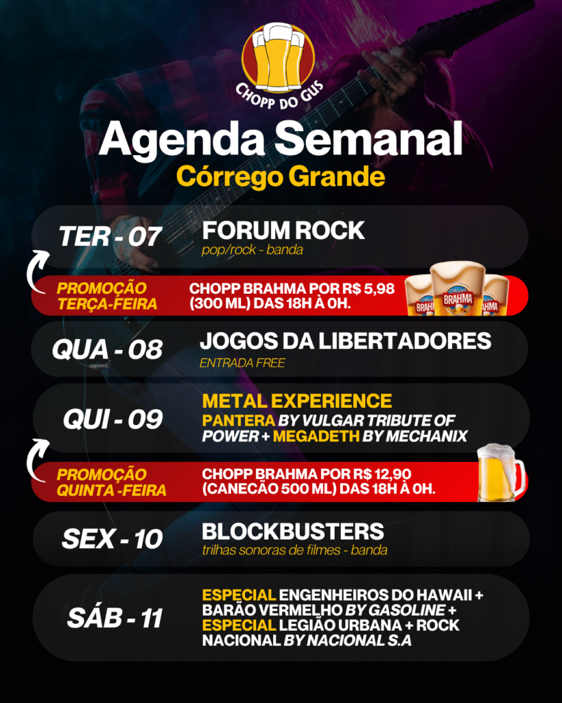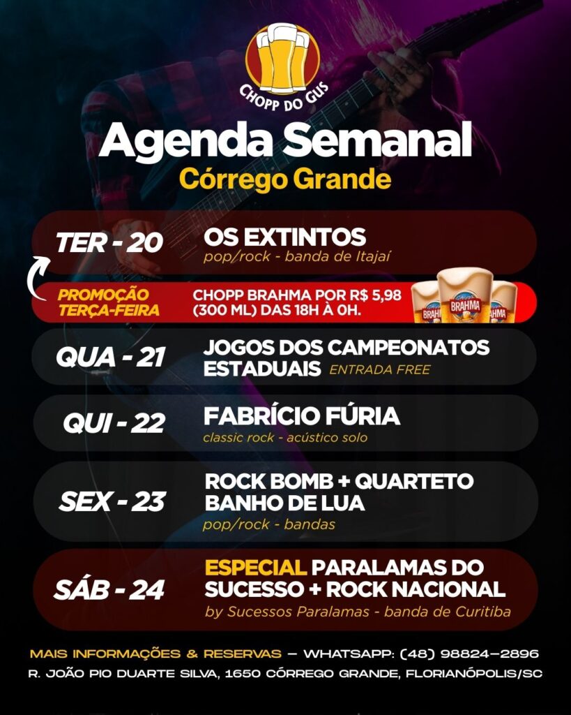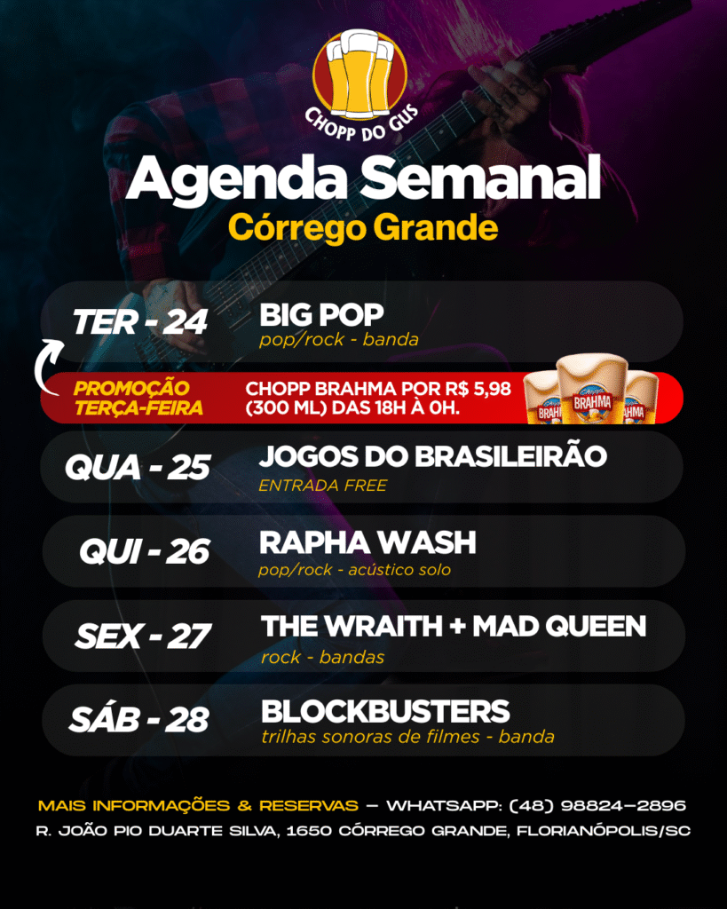 No Chopp do Gus, além de você pode reservar a sua mesa para curtir a programação regular da casa, você pode também fazer reservas especiais para a realização de happy hours, comemoração de aniversários e eventos fechados. Disponibilizamos uma estrutura física e operacional completa para você se divertir com as pessoas que você mais gosta.