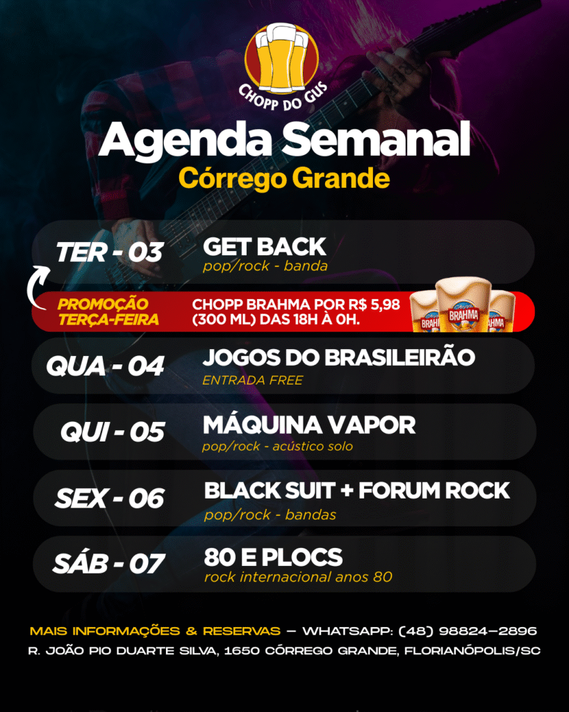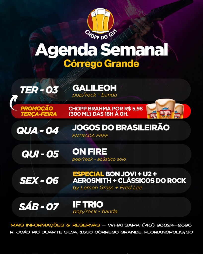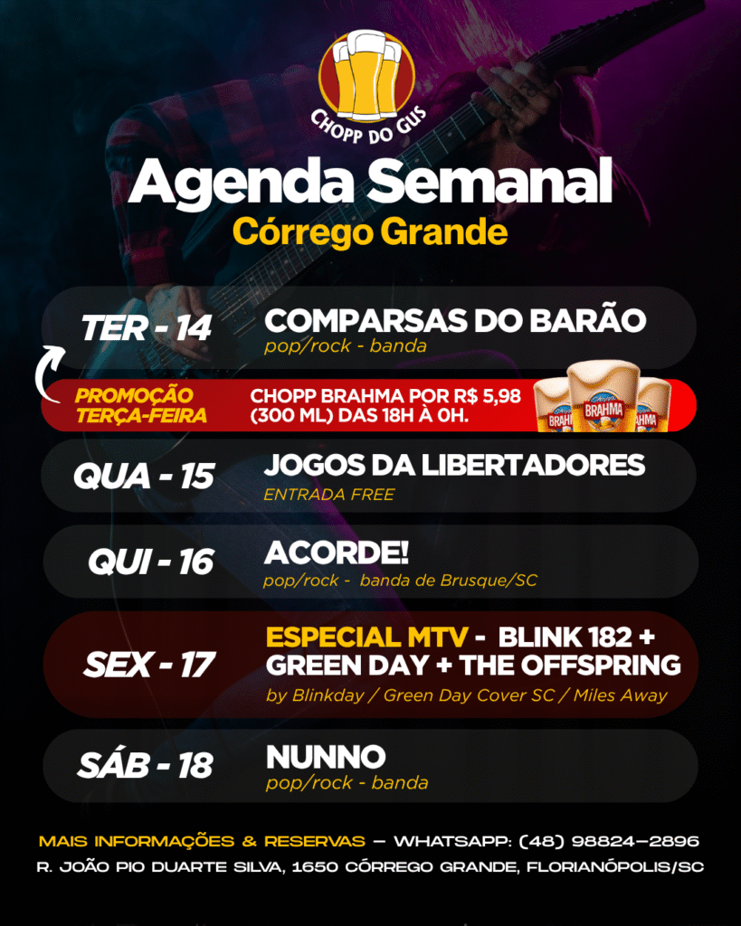 No Chopp do Gus, além de você pode reservar a sua mesa para curtir a programação regular da casa, você pode também fazer reservas especiais para a realização de happy hours, comemoração de aniversários e eventos fechados. Disponibilizamos uma estrutura física e operacional completa para você se divertir com as pessoas que você mais gosta.